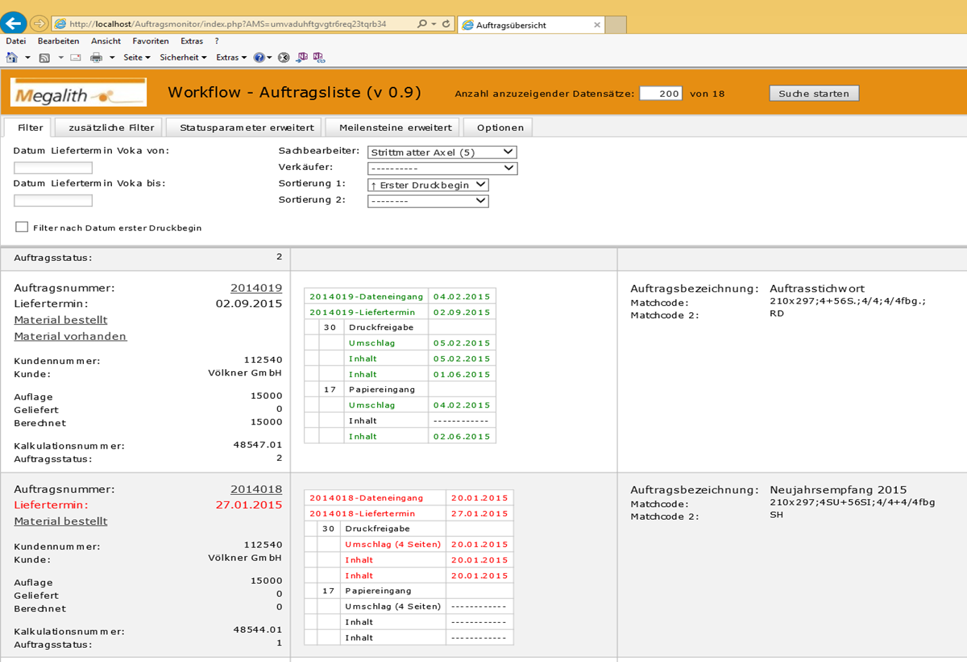 The MEGALITH job monitor is the instrument for editing and monitoring all jobs.
